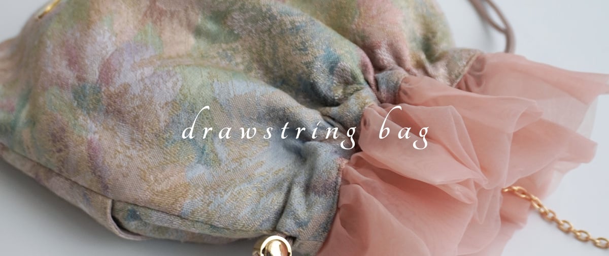 ジャガード ドローストリングバッグ 巾着 ワンハンドル 花柄 ピンク ホワイト チュール オーガンジー 長さ調節