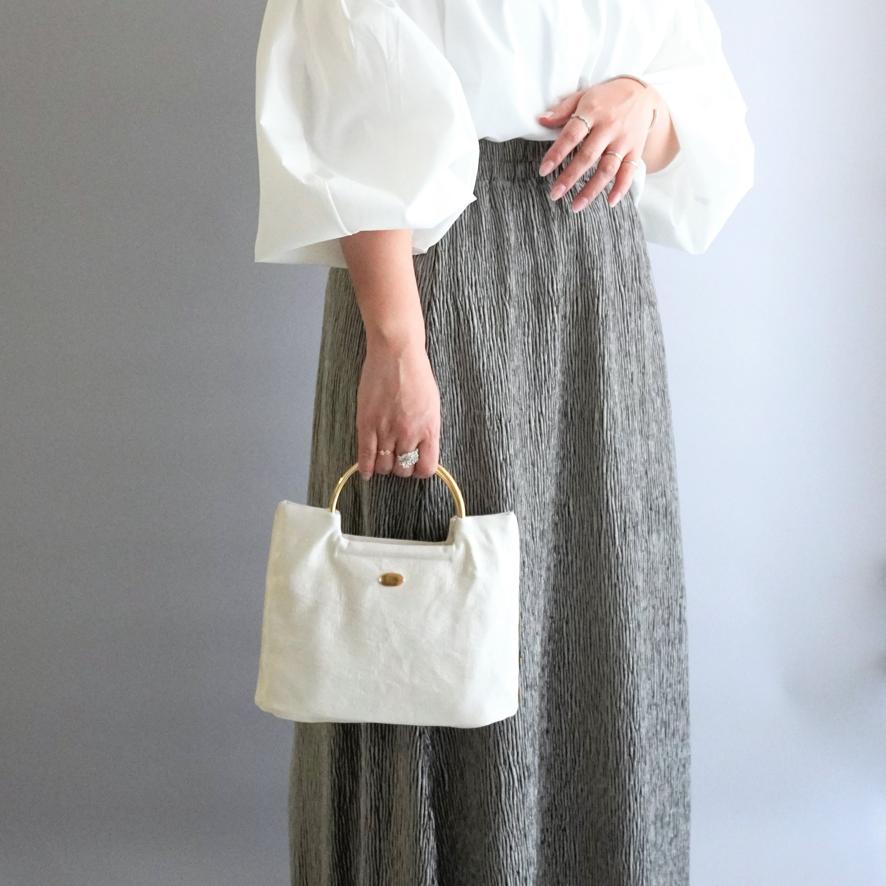 \ シンプルでも、持つだけで気分が上がる大人のリングハンドルバッグ /