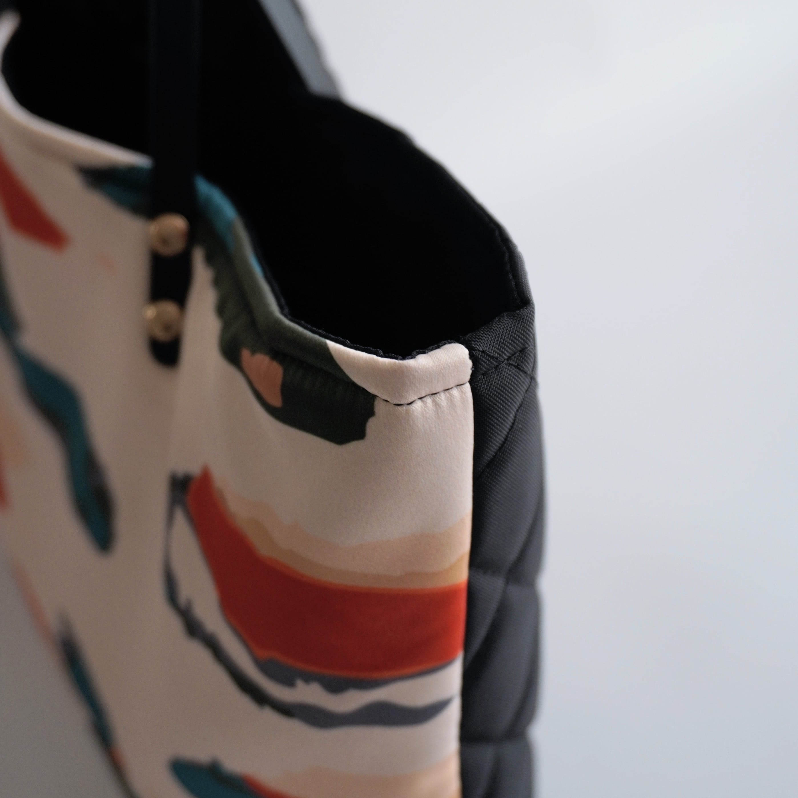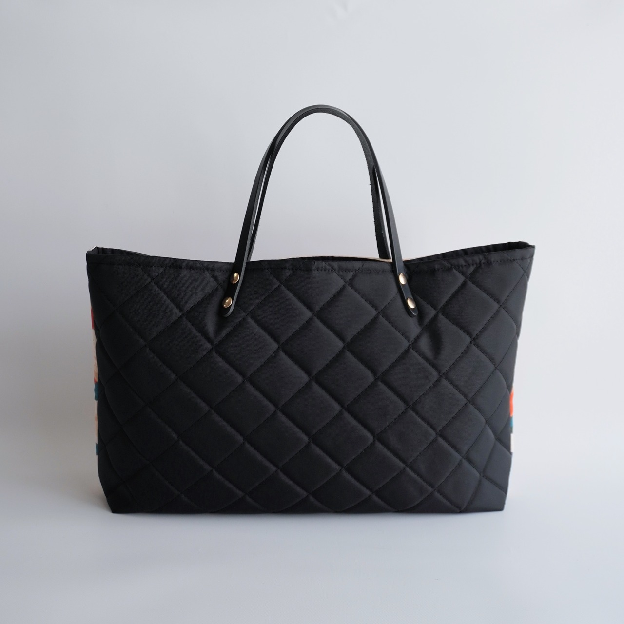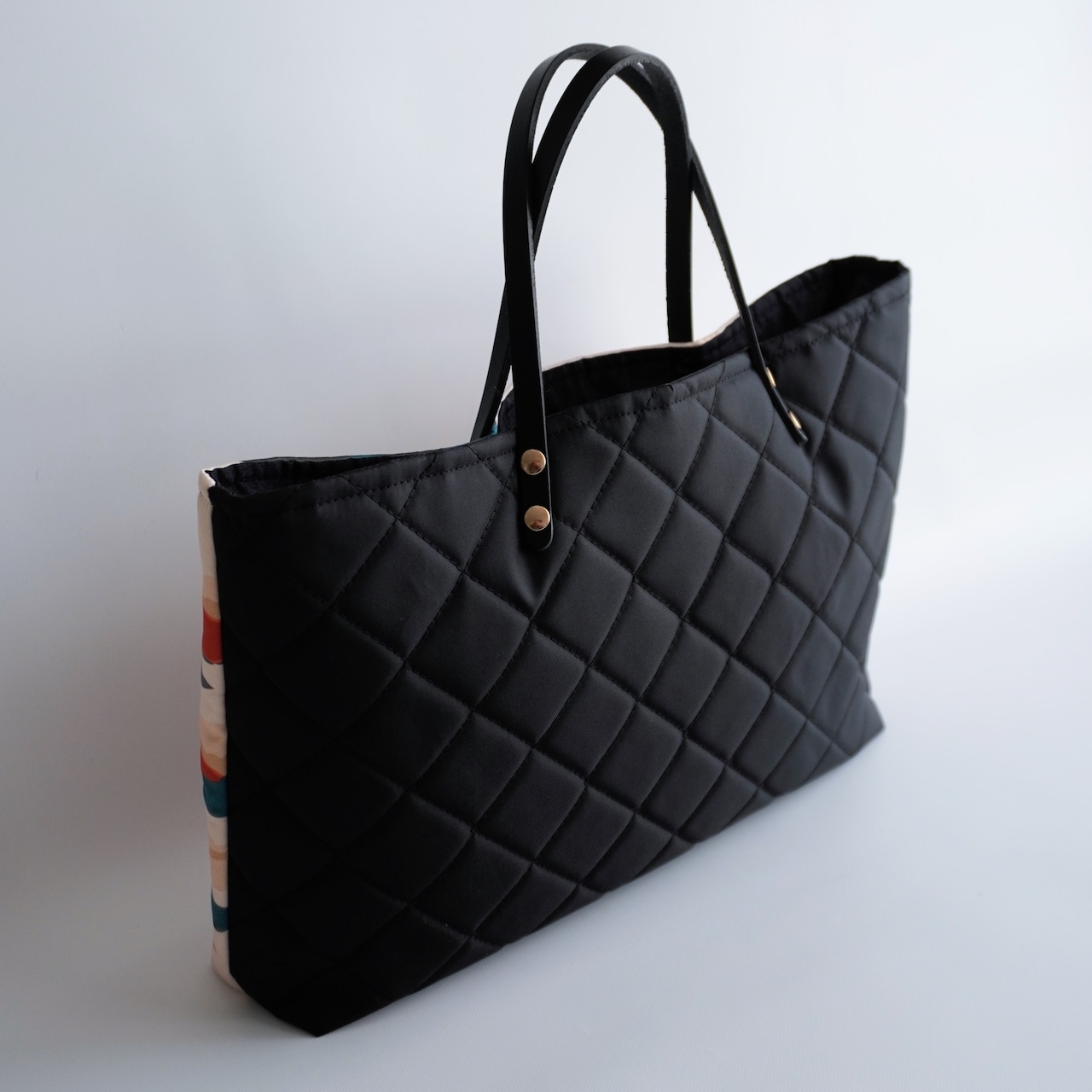軽量 キルティングトートバッグ|スカーフ柄 大人カジュアル 差し色バッグ