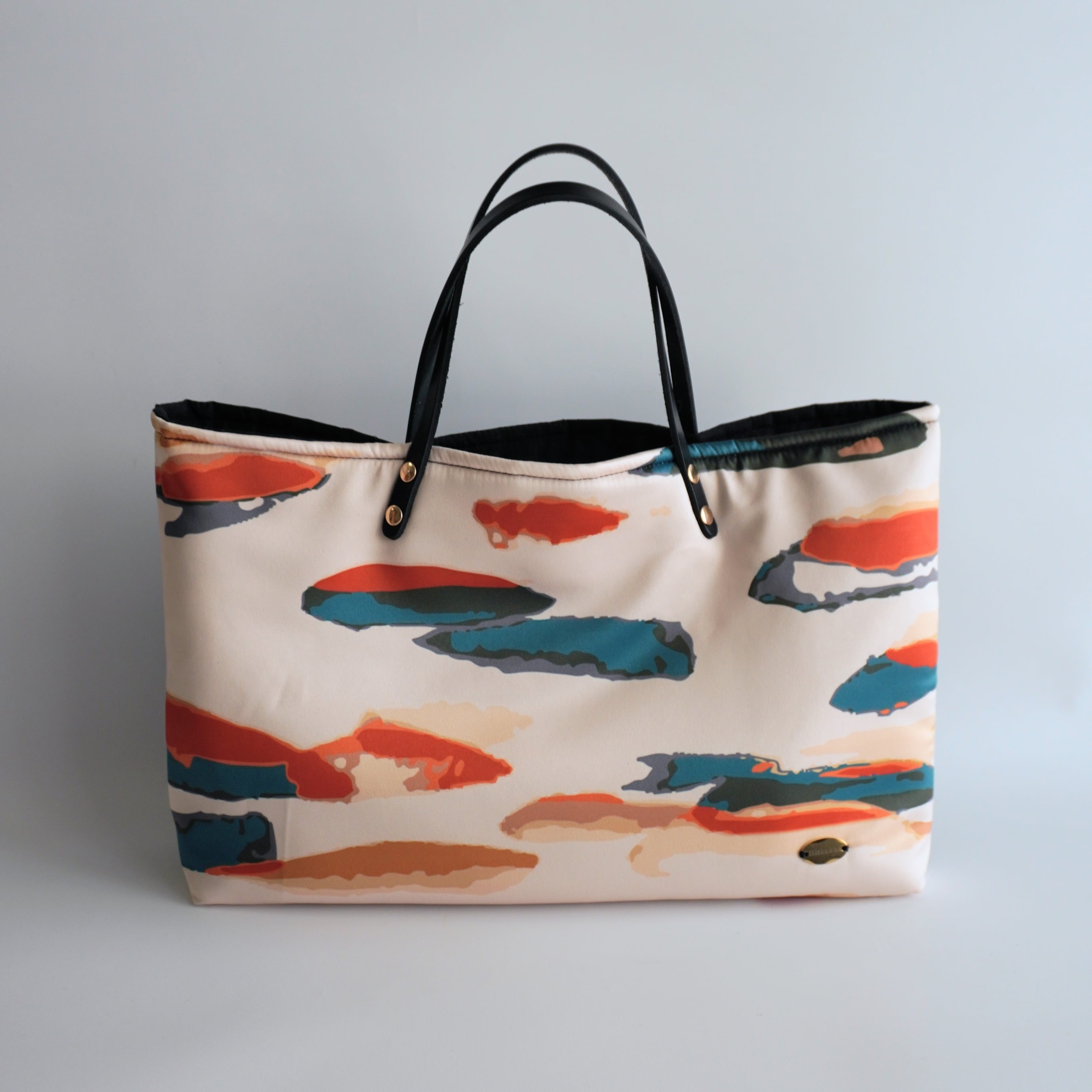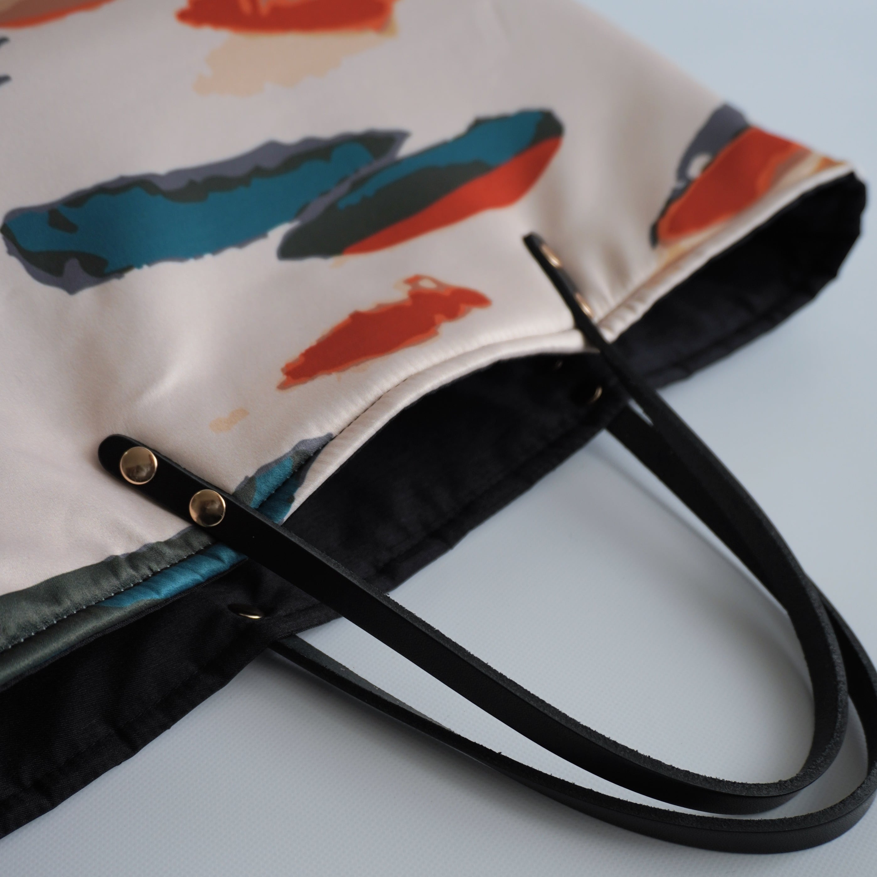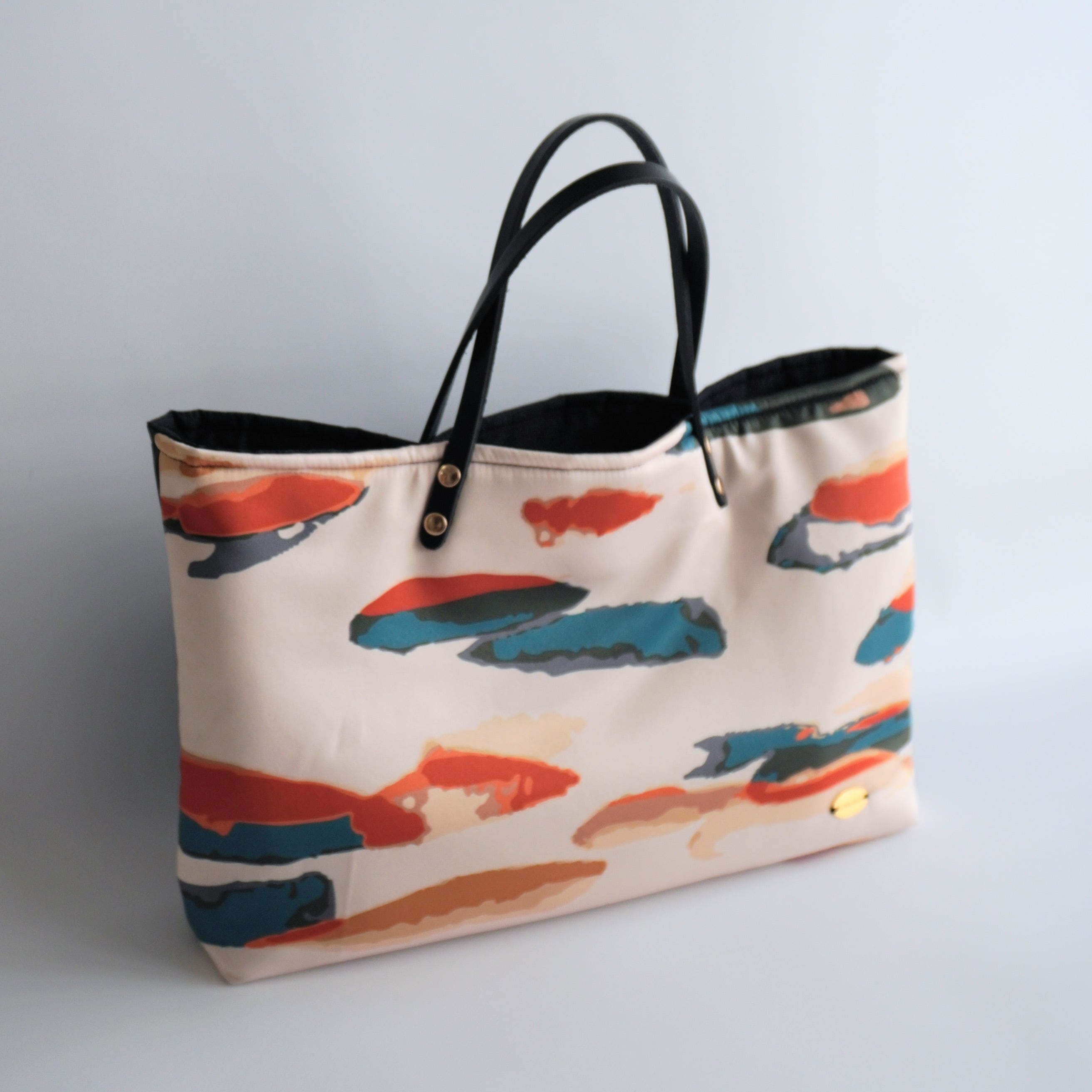 軽量 キルティングトートバッグ|スカーフ柄 大人カジュアル 差し色バッグ