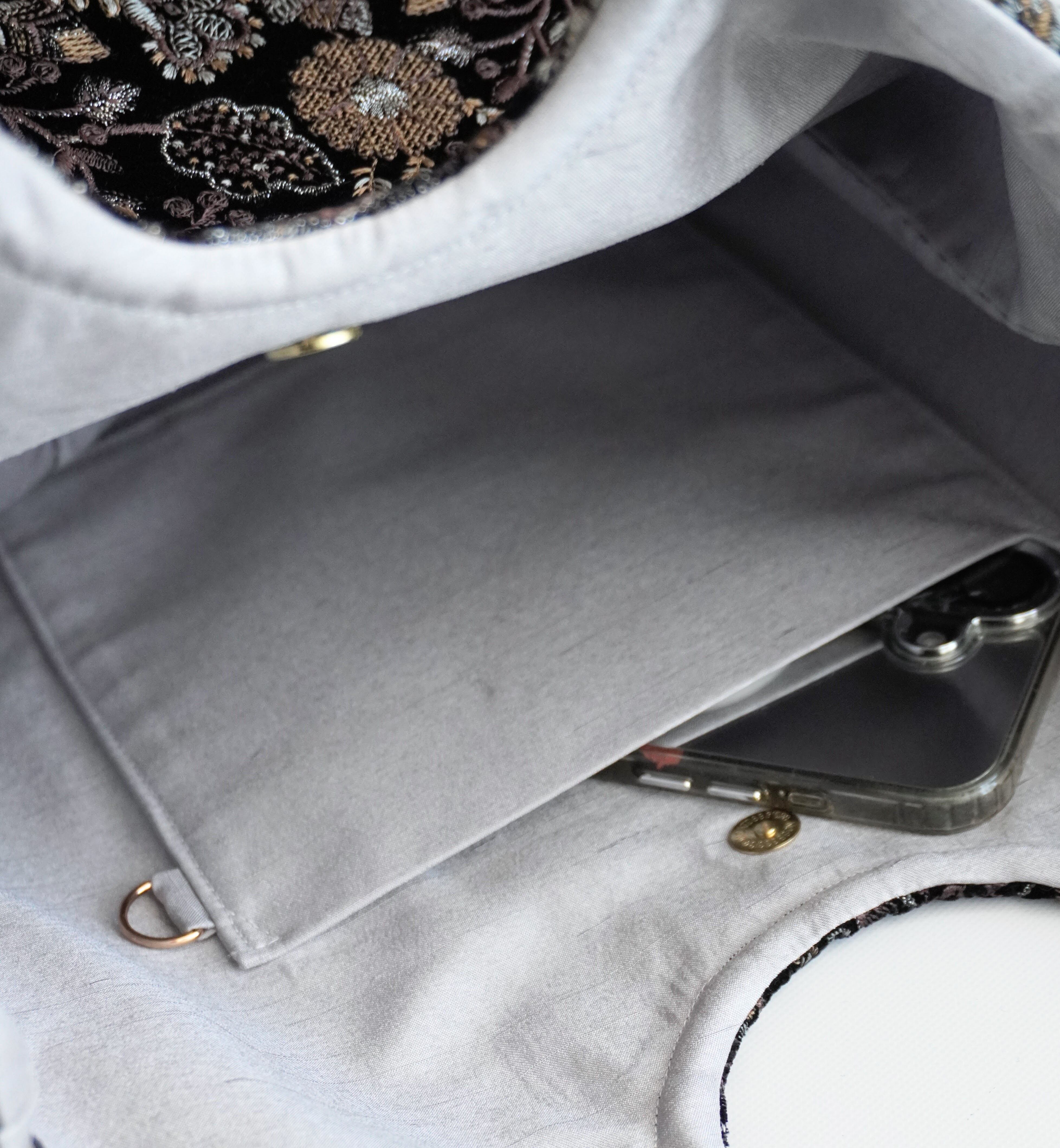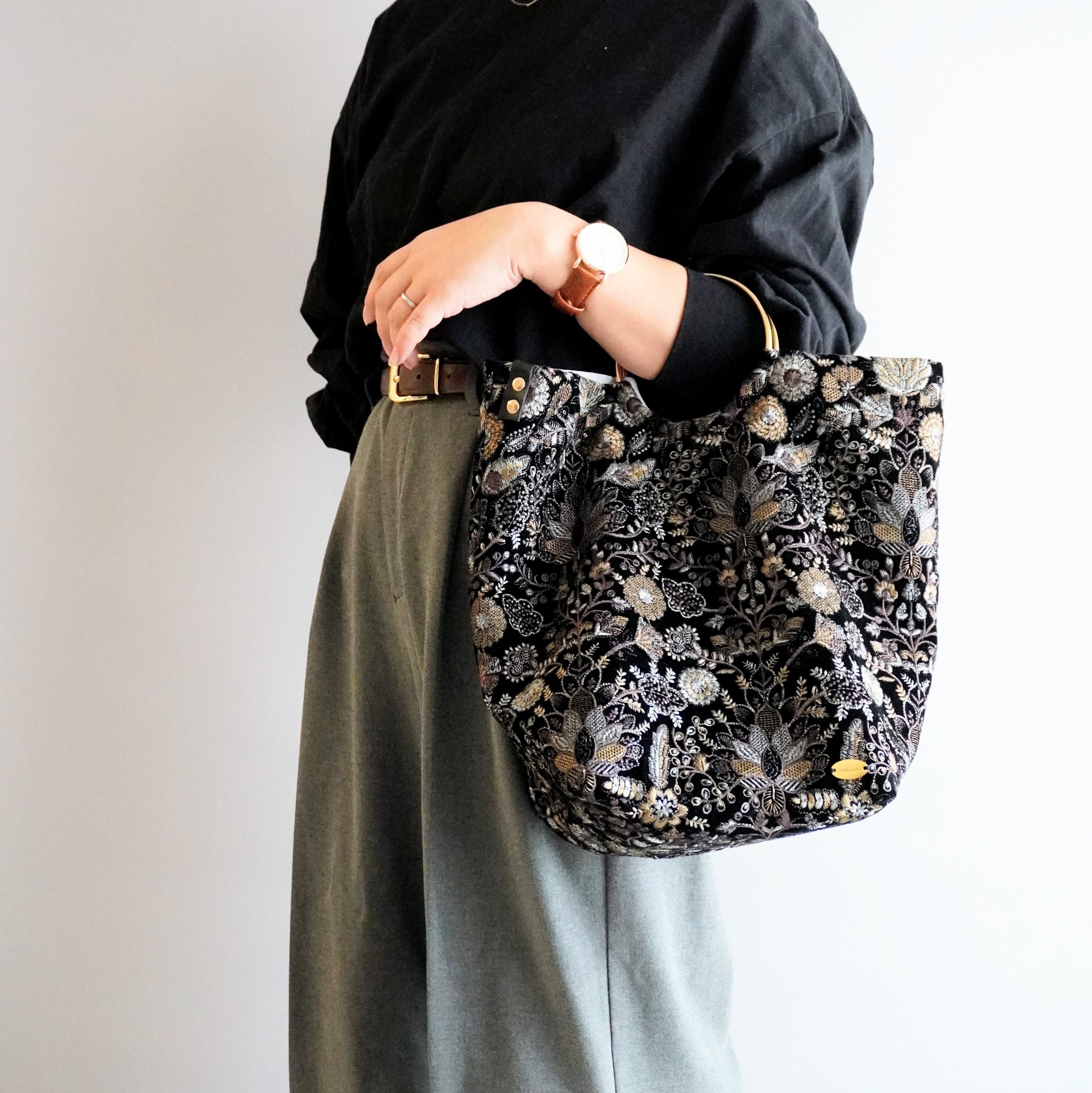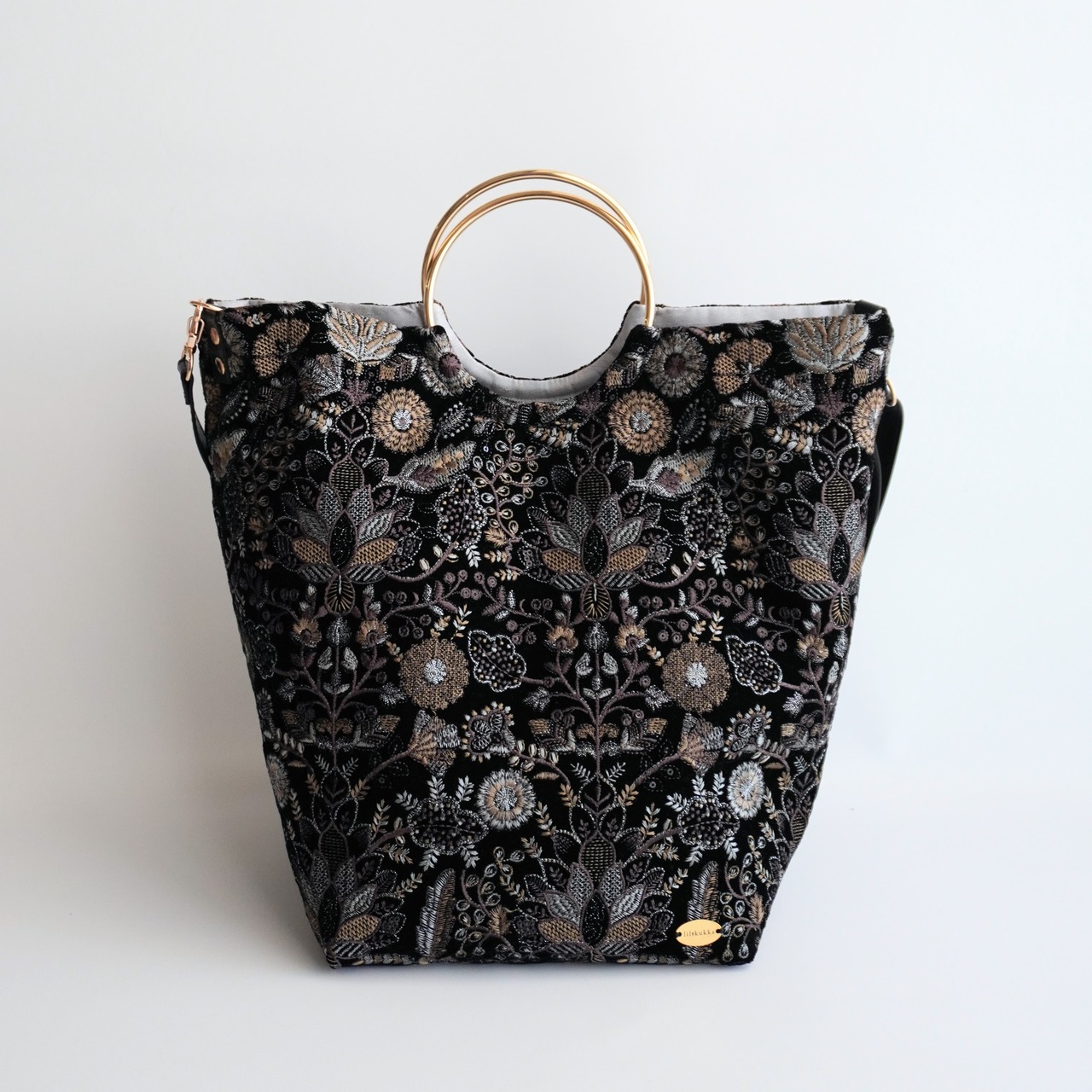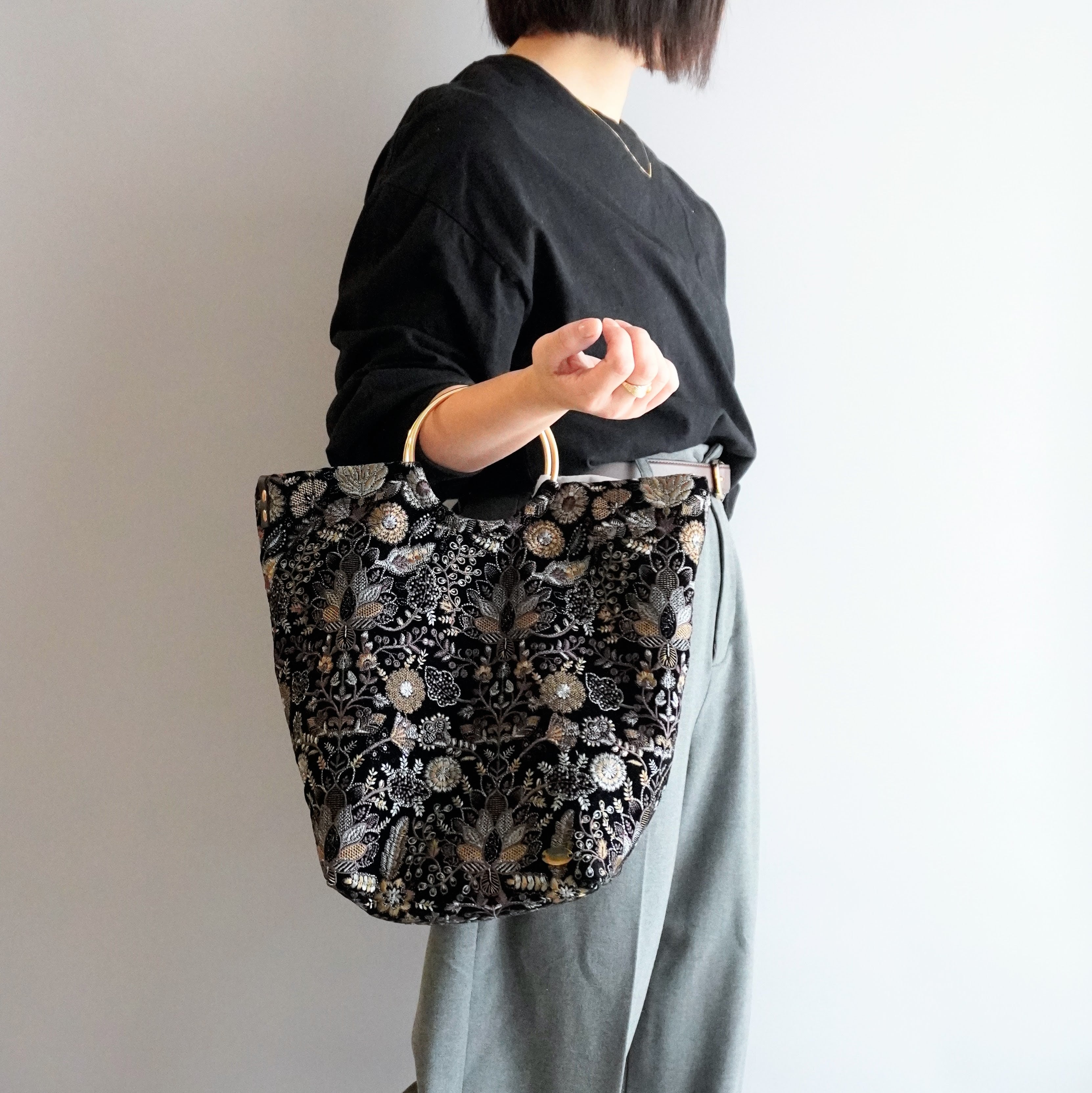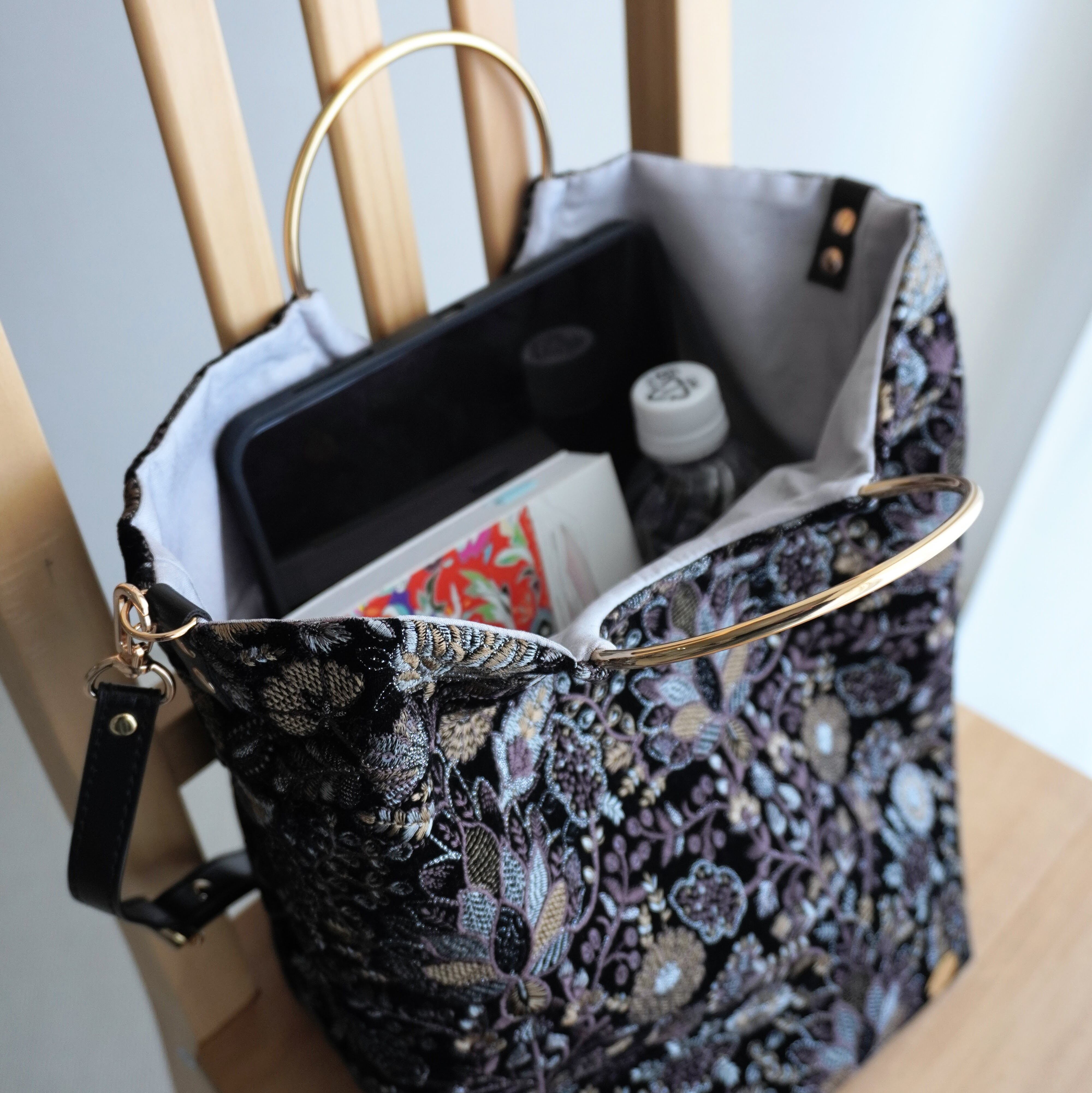 軽くて、たっぷり入る、刺繍生地を用いた大人のためのトートバッグです。