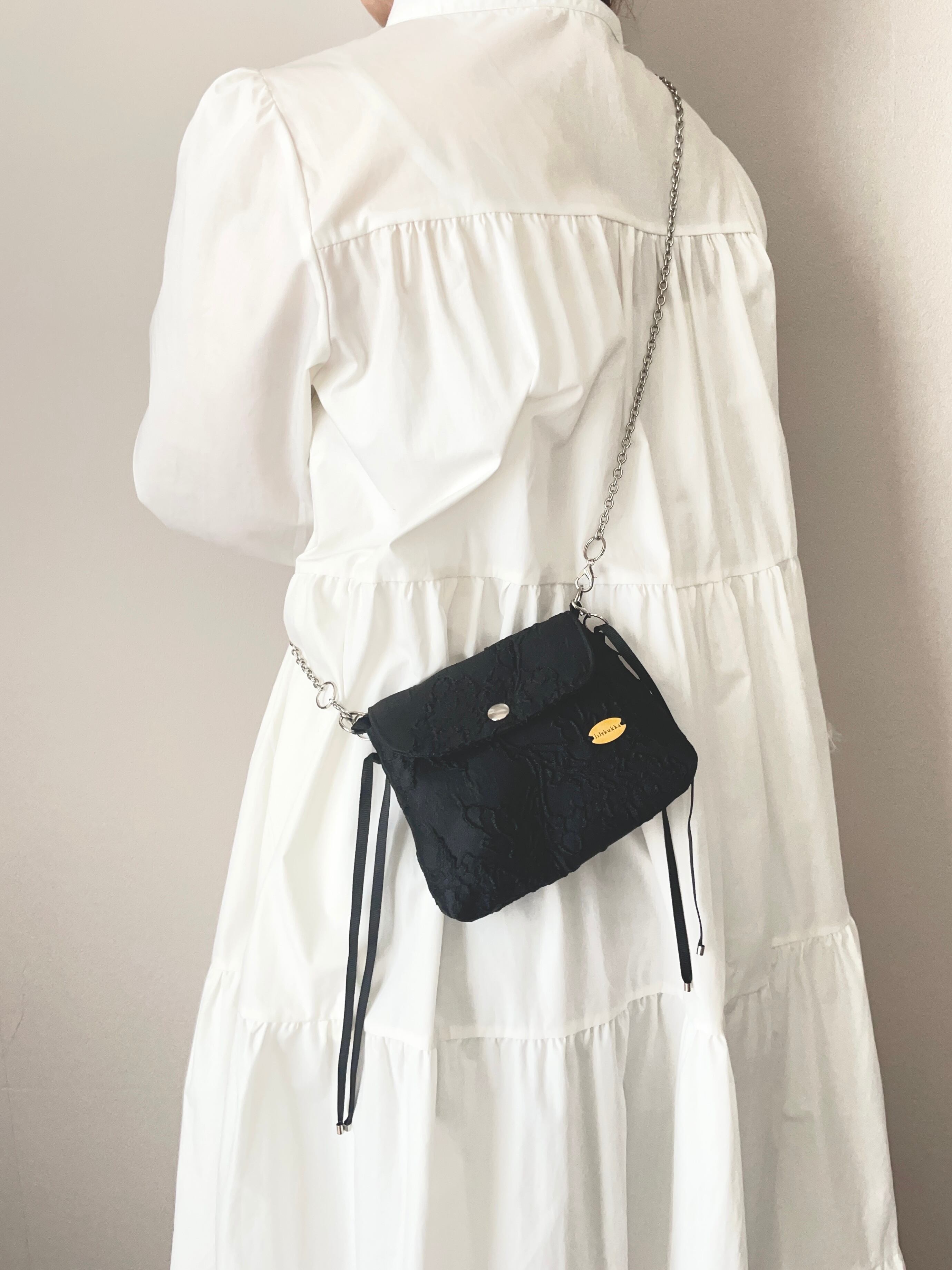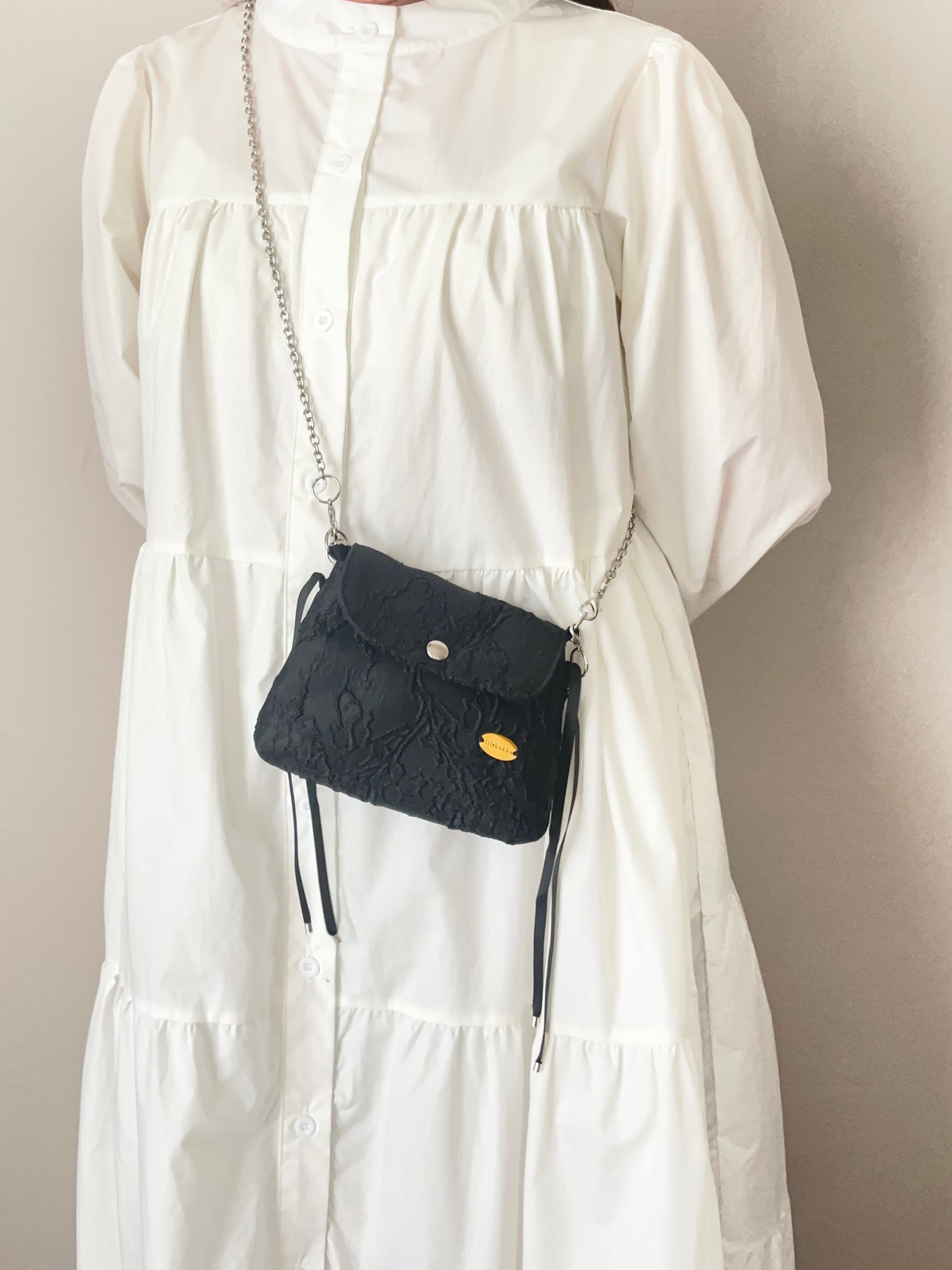 立体的なジャカード生地が美しいシックで大人っぽいミニバッグです。