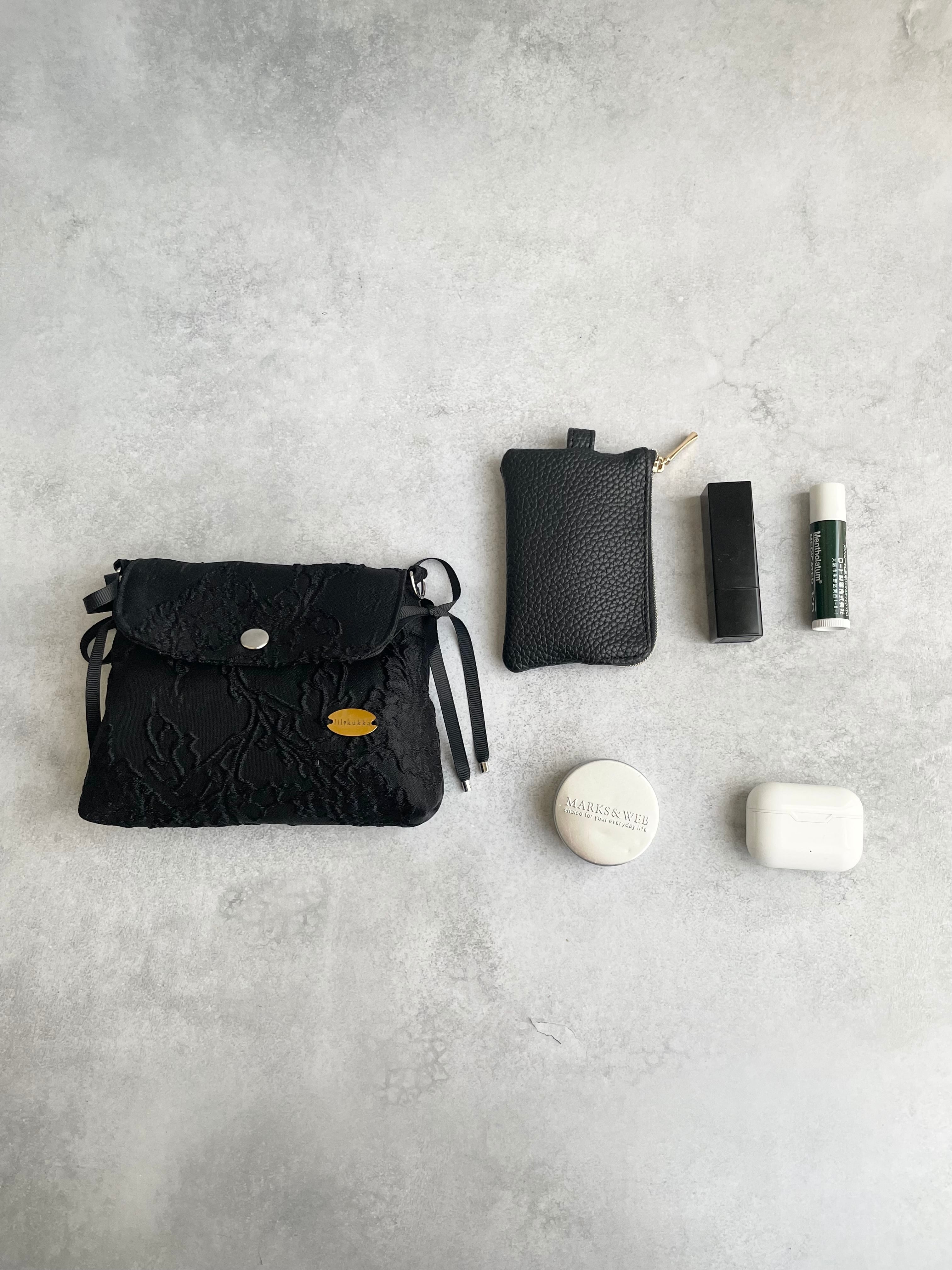 小ぶりでありながらマチがあるためリップ・カードケース・イヤホン等、すぐに取り出したい物が入るちょうど良いサイズです。