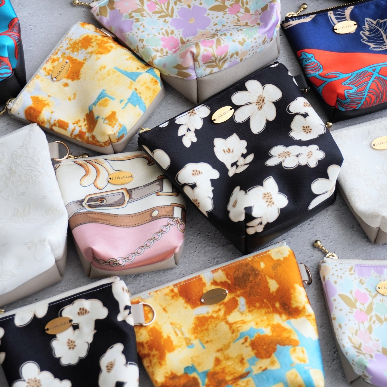 スカーフ生地のポーチ2点セット|全7柄(ギフト・プレゼントに)