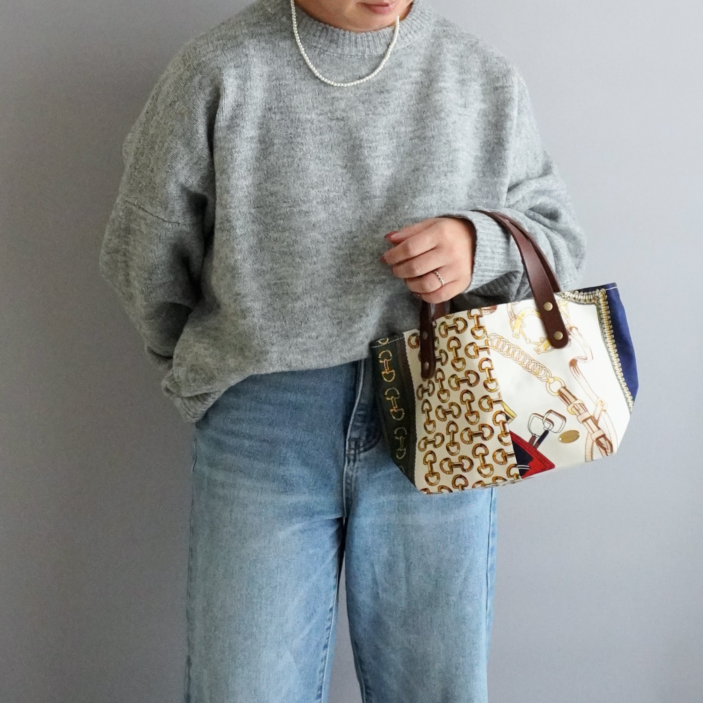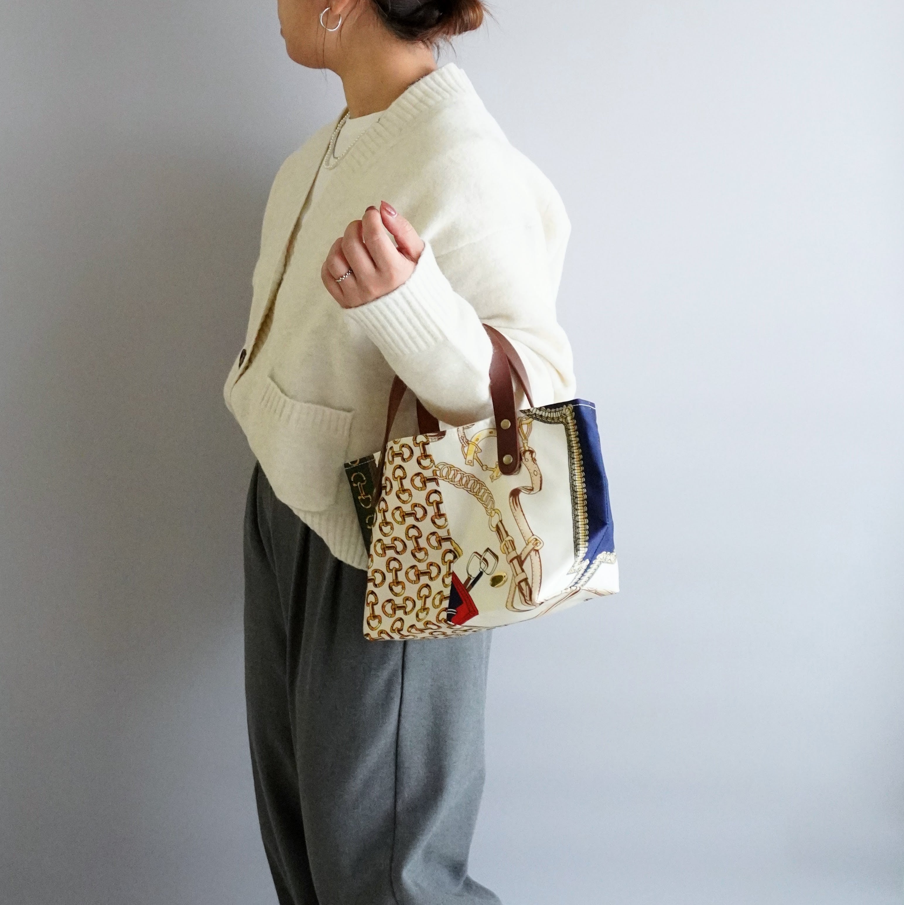 丈夫な帆布仕立て|軽量スカーフバッグ|大人きれいめトート